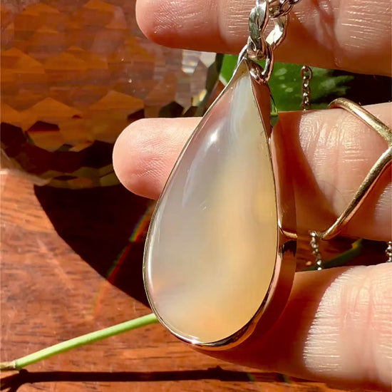 This is such a beautiful hypnotic drop of agate whose swirling depths play tricks on the eyes! It is set in a custom sleek sterling bezel as if silver itself tried to hold a piece of mystery. Completely drool worthy!